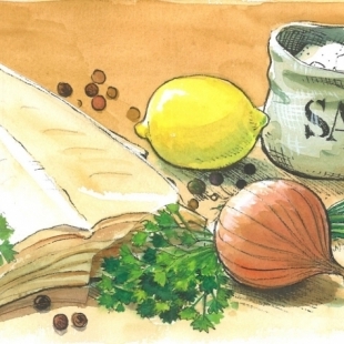 3Acrescente o arroz, a água e o tomilho. Tempere com sal e pimenta.